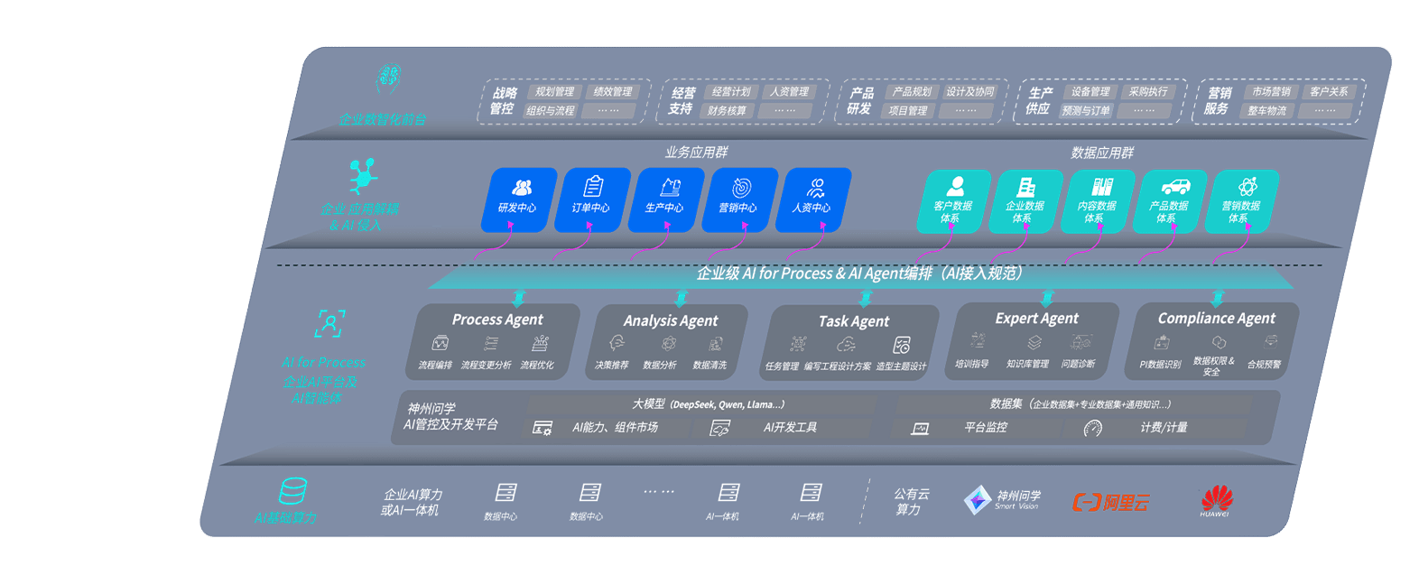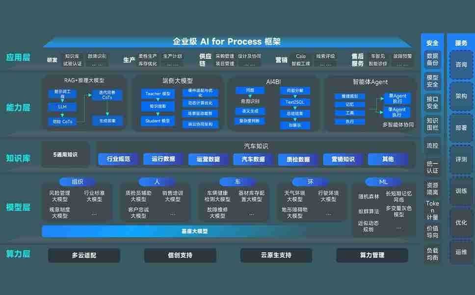 AG尊龙凯时问学智车解决方案是一套基于AI技术的汽车行业智能化系统,,,,覆盖从底层算力到顶层AI应用的全栈方案。。。。方案由算力层、、、模型层和应用层组成:算力层,,,方案支持多种一体机配置,,具备云端灵活部署、、多云适配以及动态优化计算资源的能力;模型层,,,AG尊龙凯时问学平台版提供了企业级AI应用一站式构建与管理平台,,,,支持基于后训练强化技术的汽车企业专属模型的训练、、、、评测和运营;应用层,,,,AG尊龙凯时问学DeepSeek版提供包括超级员工、、智能招采、、、、智能营销、、智能客服、、、、AI for BI等一系列解决方案,,,可助力汽车行业实现数字化转型,,,让管理更智能、、、、响应更敏捷。。